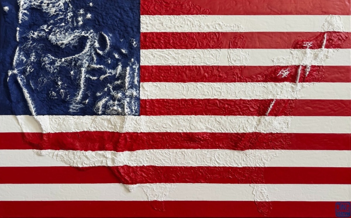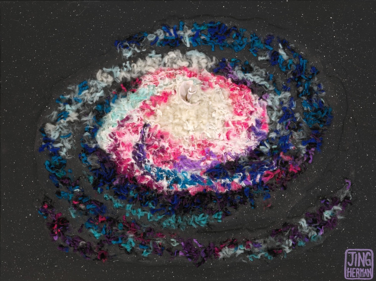 Jing Herman is a Chinese-American mixed-media artist known for her thick, tactile surfaces, multicultural storytelling, and innovative use of authentic “toppings” such as pennies, gems, cotton, sugar, sea life, branches, and yarn, set in a 100% non-toxic, home-made textured paste made from glue, baking soda, and acrylic paint. Her work is deeply rooted in nature, geometry, and gratitude for the American Dream. Before dedicating herself to art, Jing was an investment banker and corporate strategist at JPMorgan recognized in the inaugural Forbes 30 Under 30 Class of 2012 and the U.S. CEO of an international tech unicorn.